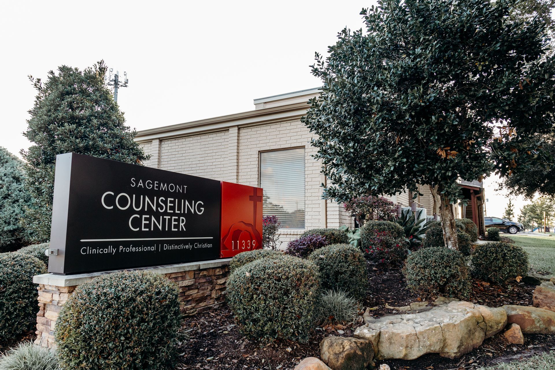 The Counseling Center is conveniently located away from the main campus of Sagemont Church for confidentiality purposes. Our Counseling Center is located at 11339 Hughes Road (tan 2 story building). Parking and entrance to the building are both located at the rear/back of the building. Additional parking is available across the street.