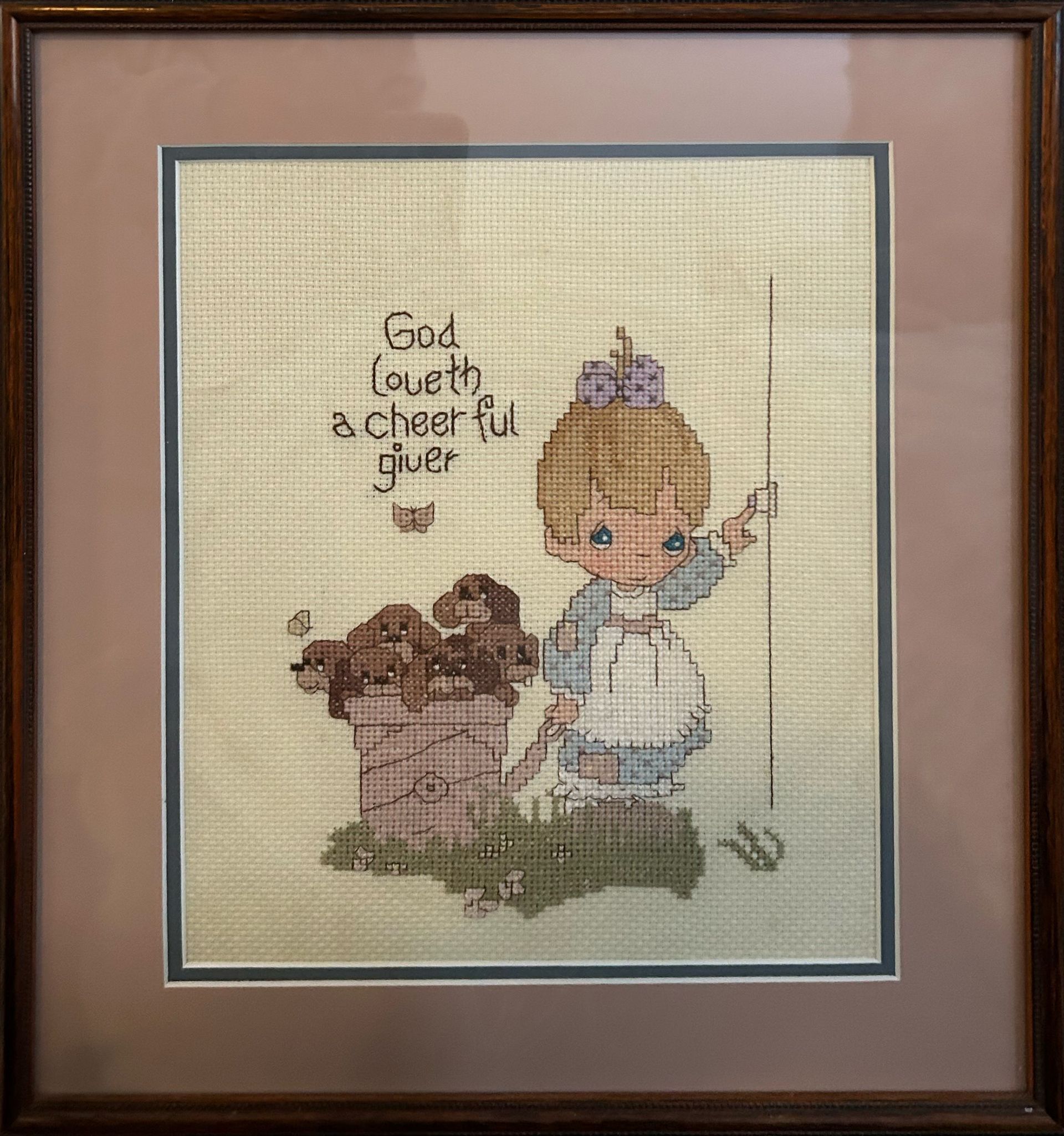 I still remember the Precious Moments cross-stitch that hung in my bathroom throughout my childhood. Stitched into the fabric were the words of 2 Corinthians 9:7: